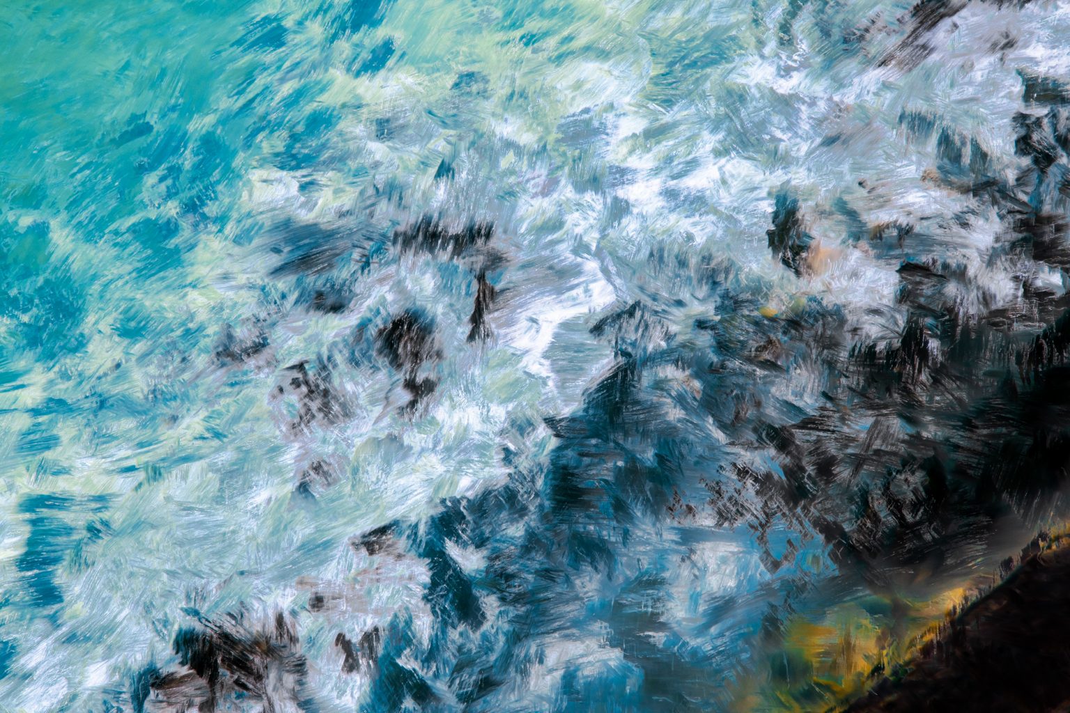 Water’s Ways is rooted in the familiar painting traditions of impressionism, expressionism, surrealism and dadaism. Those images which seem to echo an underwater world will take on a magical note when printed on silver brushed aluminium.